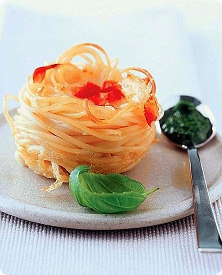 - Gratinate i nidi così ottenuti nel forno alla massima temperatura per 10 minuti, sformateli e serviteli con la salsa al basilico che avrete tolto dal frigorifero 20 minuti prima di servire